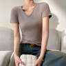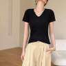 PLUSSELF Tシャツタンクトップ・ブラウス・vネック・無地・ショート・着やせ・スリム・レディース・女性・夏服・服