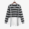 PLUSSELF トップス大きいサイズ・ラウンドネック・ストライプ・春夏・ルーズ・ニット・マニアック