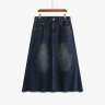PLUSSELF スカート大きいサイズ・ミディアム丈・デニムスカート・Aラインスカート・着痩せ・ゆったり・レトロ
